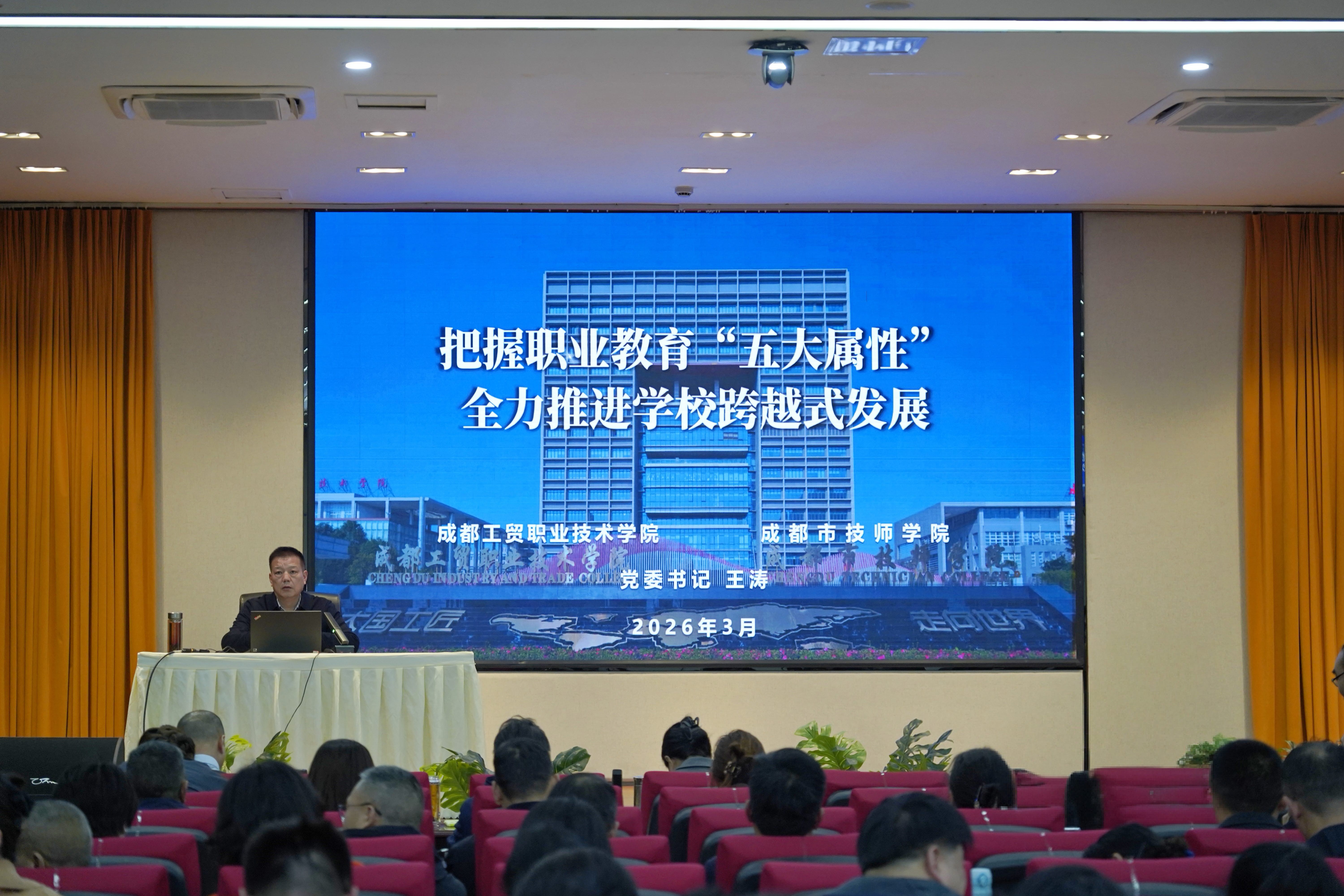 3月6日,学校召开2026年春季学期工作部署会。学校党委班子成员出席会议,科级及以上干部、正教授、博士、教研室主任、“立园满园”驻园教师参加会议。会议由党委副书记、校长杨莉主持。党委书记王涛以《把握职业教育“五大属性”,全力...
